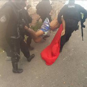Policiais militares do Rio de Janeiro forjam um auto de resistência mudando o corpo de um dos mortos de lugar, em agosto de 2012